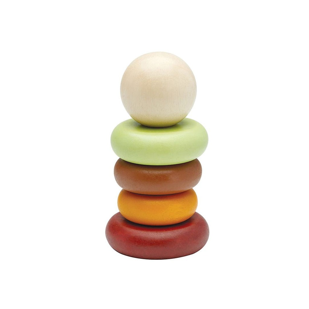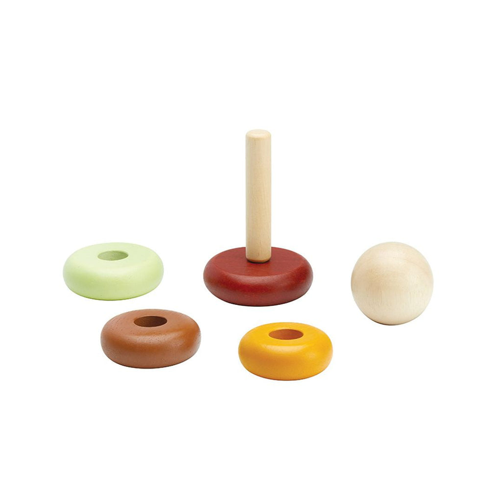 Start learning about size and order with the PlanToys First Stacking Ring. This version comes in our modern rustic colorway. Children will be able to stack the rings over and over again in the pattern of their choice as they develop foundational fine motor skill through play. For your child's safety and storage purposes, the center rod is foldable.