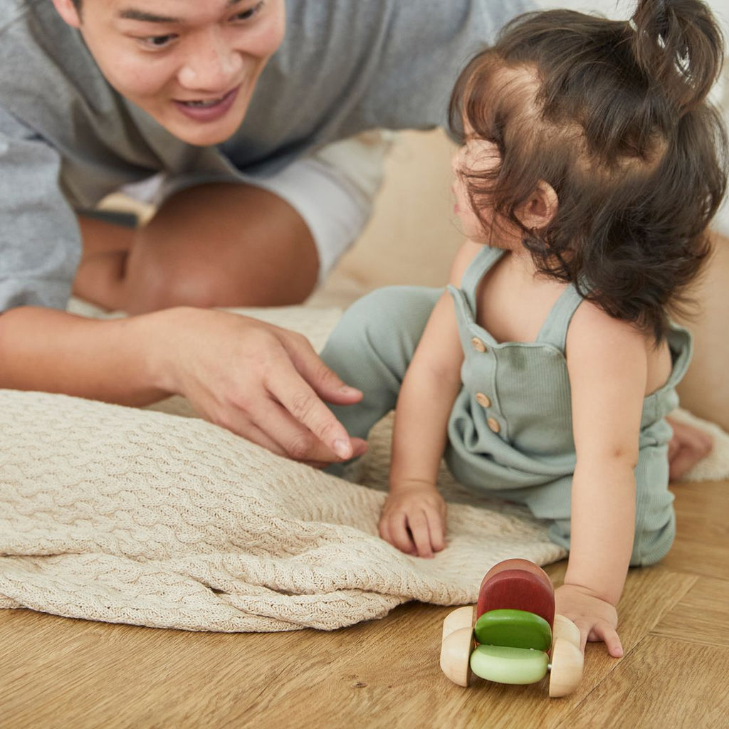 The PlanToys Baby Car is now available in the modern rustic colorway. This colorful toy car with a flexible body that reacts to your baby’s touch. Watch as baby pushes and grasps the smooth rounded edges to collapse the car and it bounces right back into shape as soon as pressure is released. The baby car will helps build visual and fine motor skills through play.